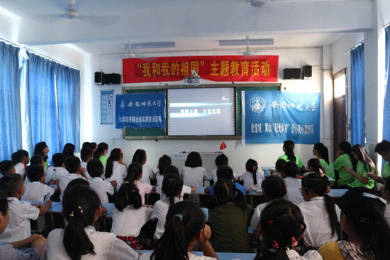 “你们知道今天是什么日子吗?”支教老师杨东启问道,“七七事变。”学生们异口同声地答道。一个简单的对话拉开了此次活动的序幕。7月7日,举国同祭。“硝烟蹂躏江河泣,魔鬼摧残草木忧”,那是一段不堪回首的阴暗岁月,是一个腥风血雨的死亡年代。借助教室的多媒体以3D的形式生动形象地展现了卢沟桥上的硝烟漫天,战火四起。学生们紧紧地盯着屏幕,似乎每一个声响都紧扣心弦。简短的视频播完后,学生们纷纷议论起“七七事变”,述说自己的感想。支教老师王静走向讲台,为学生们详细地讲解这段历史,将大家的思绪拉回了那个战火纷飞的年代,“如今的和平与安宁是用鲜血换来的,孩子们要好好珍惜当下,做一个有担当的人,”王静说道。不少学生严肃地点点头,眼眸里流露出的是对那段历史的思考,是对未来生活的展望。