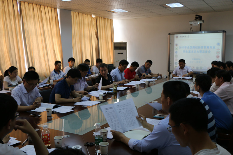 本网讯 (437ccm必赢国际版 金治港/韩旭)2017年5月21日下午,437ccm必赢国际版在行政楼三楼会议室召开了2017全国高校体育教育专业学生基本功大赛院内准备会。437ccm必赢国际版领导班子成员及各项目部(组)负责人参加了会议。会议由院长席玉宝主持。