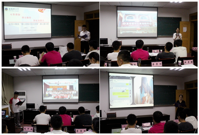 经过学院初审和选拔,共有12支队伍脱颖而出,参加汇报竞争学校重点团队。各支队伍按抽签顺序依次上台汇报,通过PPT演示的方式,分别从团队成员、活动目的、活动准备、活动方案等方面详细介绍了各自团队的准备情况。不同的队伍,相同的梦想,大家都希望把爱心、把欢乐、把梦想带给支教学校里的孩子们。