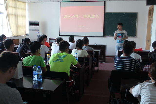 诚信影片知诚信。5月25日,437ccm必赢国际版在行政楼研究生教室举办“诚信还贷·感恩成长”主题教育活动。首先,学院资助管理办公室负责人冯中超老师为同学们解读了生源地助学贷款的具体流程和注意事项,并带领同学们学习了国家助学贷款的政策法规。接着,全体同学集体观看了《贷款助学·信用助人》教育影片,让每位同学在轻松的氛围中加深对助学贷款的了解,学习遵守诚信之道。