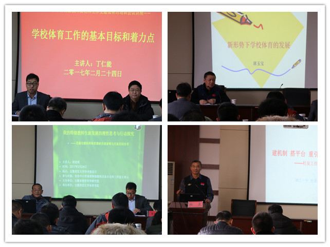 会议分两个阶段进行,第一阶段由体卫艺处主任科员丁仁能、437ccm必赢国际版院长席玉宝教授、省特级教师芜湖市体育教研员胡亚明、省特级教师名师工作室负责人杜泉分别做主题报告,第二阶段为交流研讨。报告会上,丁仁能针对学校体育工作的基本目标和着力点进行分析;席玉宝从国外形势和国内形势两大方面强调体育已经成为全球关注的热点,发展进程势不可挡;胡亚明讲述了“我的特级教师生涯发展的理性思考与行动探索”,从教材的制高点上上好体育课,从为学而教的制高点上去评价和反思日常教学;杜泉从自身体育名师工作室建设出发,分享了自己工作室“建机制、搭平台、重引领、勤管理”的有效经验。