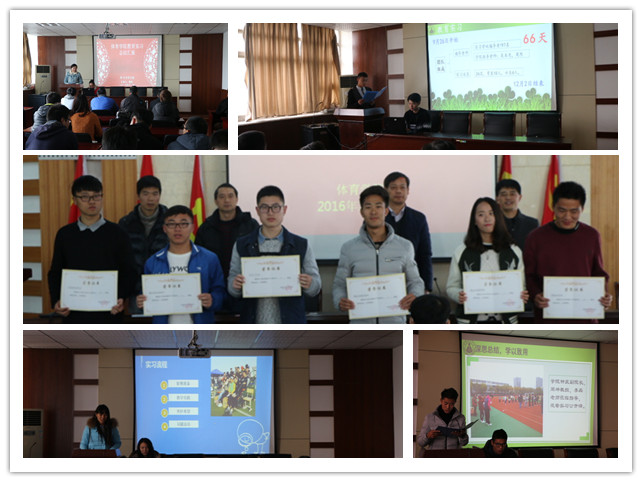 会上,金涛首先对同学们圆满完成实习任务,平安返校表示热烈的祝贺。他充分肯定了2013级学生在实习工作中取得的成绩,勉励广大同学通过实习练就教学本领,锻炼意志品质,提高就业技能,服务奉献社会,同时还从前期准备、实习阶段和返校总结等几个方面作出了全面的分析总结,也提出了进一步完善实习工作的意见。黄德春代表学院宣读了《关于表彰2016年优秀实习小组的决定》和《关于表彰2016年无生上课先进个人的决定》并为优秀实习小组和无生上课先进个人颁发了荣誉证书。