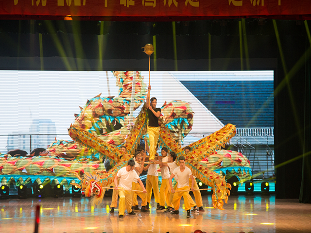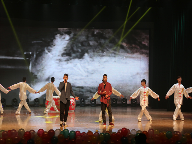 传统的文化,坚守的彼岸。暖场节目《龙腾师大》通过舞龙的形式展现体育人的风采魅力和对安师大体院的归属、追随。23位男生和1名女生表演的开场舞《龙凤呈祥》,精妙绝伦,传神经典。而现代舞《中国巾魂》则是通过另一种方式讲述抗战时期八女投江的故事,颤抖的双手、决然的眼神带给观众直击心灵的震撼。歌曲《黄种人》配有太极伴舞,唱出满满的自豪与感动。