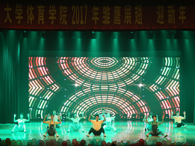 相同的方式,别样的韵味。健美操《舞出精彩》伴着欢快的音乐律动的节奏舞出属于体育人的独特精彩。在新生才艺大赛上获得金奖的现代舞《搏》张弛有度,力与美的完美结合,拼搏的人生无需解释。老师与学生们共同参演的舞蹈《课堂节奏》再现了课堂上老师与学生的感动瞬间,与离别之后的无限挂念,对老师们说声“您辛苦了”。拉丁舞《狂舞纷飞》一上场就赢得的观众的热烈掌声,真正的“狂舞纷飞”。