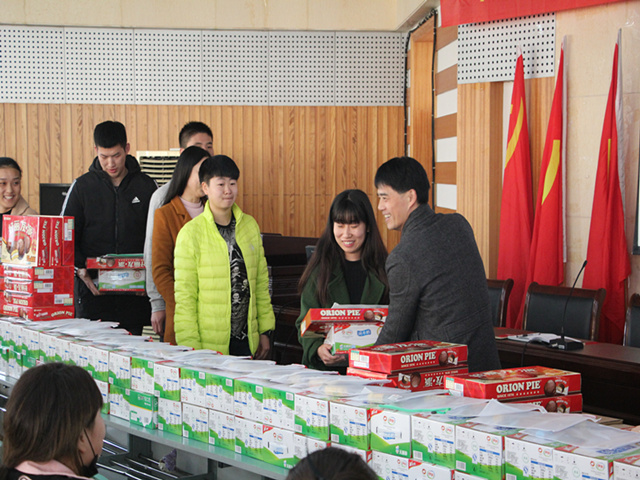 会上,金涛结合个人考博经历勉励考研学生持之以恒,注意方法,一鼓作气,坚持到底,坚定自己的信念,调试好心情,轻装上阵,以最好的状态应对考试,并祝愿考研学生通过自身的刻苦努力,取得好成绩,早日实现人生理想。黄德春在会上回顾了我院近几年考研状况和现阶段考研所处的环境,他勉励考研学子在最后的冲刺阶段保持学习热情,坚定考研信念和决心。并提出了两点希望,第一,希望同学们在最后的关键时刻不泄气,不放弃,坚持不懈,考出风采;第二 ,希望大家要坚定信念,对自己有信心,努力拼搏,机会就会出现。最后预祝考研学子能在即将到来的考试中发挥出色,取得理想成绩。随后,与会领导亲自为同学们送上了考研文具、牛奶、面包等慰问品,并送上美好的祝福,为他们加油鼓劲。
