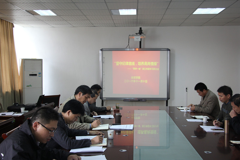 本网讯(437ccm必赢国际版 汪暠)11月10日上午,437ccm必赢国际版党委中心组在学院三楼会议室召开“两学一做”第三专题“坚守纪律底线、培养高尚情操”交流研讨会。院领导班子成员、教工和学生党支部书记参加交流研讨会。会议由学院党委书记袁德水主持。