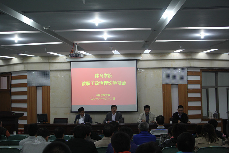 本网讯(437ccm必赢国际版 汪暠)10月12日下午,437ccm必赢国际版党委组织全体教职工在圆形报告厅召开政治理论学习会。会议由院党委书记袁德水主持。