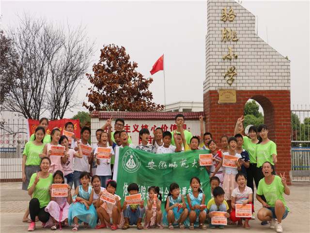 “437ccm必赢国际版赴芜湖市二坝镇骆跳小学‘阳光体育爱心夏令营团队’”,这个长长的团队名称是我们的名片。原本约定的7月初开营,无奈一场大洪涝将时间推迟到了8月底。之前队员们都来过一次实践地,也感受到了这里的条件——交通不便利,坐船坐大巴等等要转好几趟。小学附近连个像样点的小店都难以找到。大家心里都很清楚自己未来7天要过的是什么样的生活,但是8月20日,没有一个人缺席,大家还是按照了约定的时间准时开营。