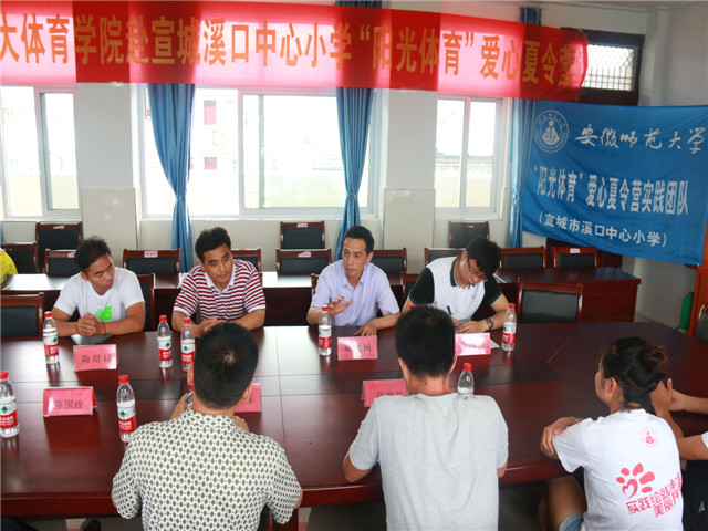 本网讯(437ccm必赢国际版团委)情系乡村支教,让爱与梦同行。7月5日,在437ccm必赢国际版赴宣城市溪口中心小学“阳光体育”爱心夏令营支教活动进行的第二天,科研处副处长戴兆国在437ccm必赢国际版副院长高升以及院团委书记朱凯迪的陪同下来到宣城慰问实践团队。