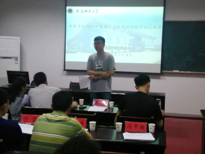 今年体院暑期社会实践团队共有38支,进过与选拔后,27支队伍胜出参加学院的汇报会。每支队伍通过ppt向评委老师们展示了团队的活动主题、实践地点、团队成员、实践内容以及预期取得成果等方面的内容。在汇报展示环节,各队伍围绕着“阳光体育”主题思想,结合实践基地的实际情况,关注当地的教育发展,把实践活动深入到基层,争取把实践活动做得更出色、更有意义。汇报结束后,院团委书记朱凯迪老师作了总结讲话,他对每位前来汇报的同学都给予了细致的点评,并表示体院“阳光体育”暑期社会实践活动已经走过了十个年头,并表示暑期社会对个人的锻炼是无法通过别的方式获得的,最后他说道,437ccm必赢国际版“阳光体育”暑期社会实践活动已经走过了十个年头,希望今年的各个团队在实践过程中通过自己的努力,能够在实践中做贡献、长才干。