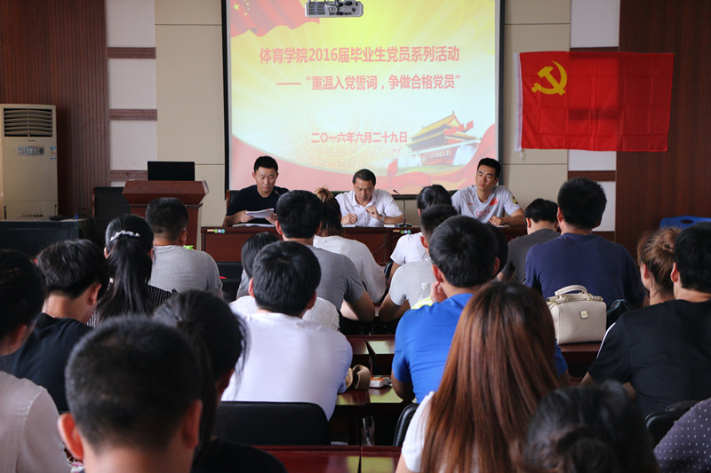 最后,黄德春做了题为《毕业生如何践行“两学一做”》的报告,他提出了“3个3”要求:一是“3带走”,即带走“体育精神”、带走“自主学习能力”、带走“优秀共产党品德”,他强调“体育精神”远远超过运动本身,对人格的塑造具有重大意义;二是“3留下”,即留下对“师大437ccm必赢国际版美好的回忆”、留下“同学之间美好的情谊”、留下“合格党员应尽义务”,他强调合格党员应做好毕业文明离校期间的榜样示范作用,为同学、为母校互相留下美好的印象;三是“3个自信”,即体育人的“自信”、自我肯定的“自信”、做合格党员的“自信”,他强调要将体育人的精神和自信始终贯穿在以后的学习生活中,将“两学一做”和实际情况亲密结合、融会贯通、知行合一,真正成为合格党员。