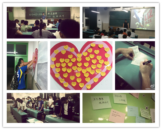 首先,全体人员起立默哀,为汶川地震中的遇难同胞哀悼。全场寂静无声,灾难的瞬间历历在目。班级宣传委员方涛带领大家回忆过往,了解汶川灾后重建过程。之后,同学们踊跃发表感言。“汶川坚强”是我们听到最多的感慨。接着,班委给大家发放便利贴,一句句来自肺腑深处的祝福印刻纸上。其中不乏有对幸存者的鼓励:“愿你被这世界温柔以待,愿你的世界雨不复来,愿你此生安康”。