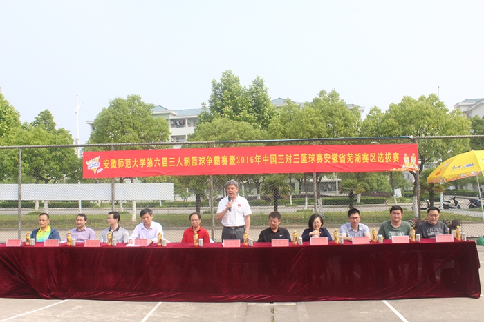 本网讯(437ccm必赢国际版 文/蔡维敏 图/左宗玲)5月14日上午9时,bwin必赢线路检测第六届三人篮球赛暨中国CBA三对三篮球赛芜湖赛区比赛在bwin必赢线路检测南侧体育馆室外篮球场火热开幕。bwin必赢线路检测党委常委、副校长朱家存教授、校团委书记梁燕、校学生处副处长张玉新、437ccm必赢国际版全体领导班子成员及相关专业负责人、大赛技术代表何也明老师、大赛裁判长蔡维敏等出席了开幕式。
