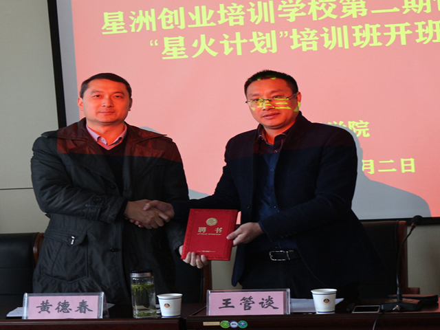 仪式上,徐梦涛首先从培训对象、时间、模块、考核等四个方面向学员们介绍了本期培训班相关计划,院党委副书记黄德春对全体学员即将步入创业征程表示祝贺,并介绍了星洲创业培训学校概况、学院“三全式”创业教育工作做法和创业优秀校友的励志故事,他勉励广大学子以“星火计划”为契机,在“大众创业,万众创新”的热潮中不断锐意进取、奋发向上,提升创新、创业意识,形成勇于创业、乐于创业、理性创业的良好氛围。