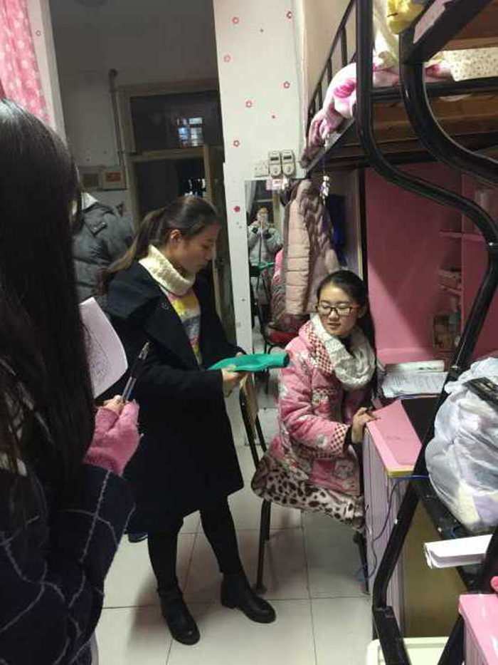 随后,辅导员张迪老师深入班级学生宿舍,强调冬季生活用品的安全问题,以及针对违规电器,进行再次排查。同学们均表示自己受到了启发和教育,承诺自己将会保证宿舍安全,文明用电。