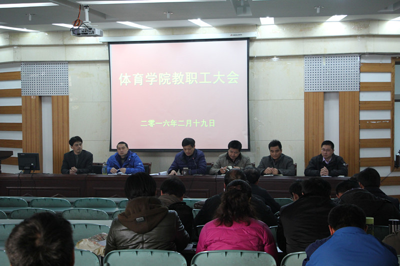袁德水结合各位院领导的工作布置,向全体教职工解读了学院2016年十项重点工作任务。他在总结讲话中强调,一要讲规矩,履职尽责。按照规章规矩办事,按照岗位职责尽责;二要守纪律,遵纪守法。要认真遵守党和国家法律法规及学校各项规章制度,党员教师还要学习遵守新修订的《准则》和《条例》,严守师德底线、禁触师德“红线”;三要做贡献,推动发展。要把握新的发展机遇,立足岗位多做贡献,为学院事业发展出力添彩。四要促和谐,维护形象。团结出战斗力,和谐出生产力。要展示好体院人的新风貌、维护好体院人的新形象、传递好体院人的正能量。