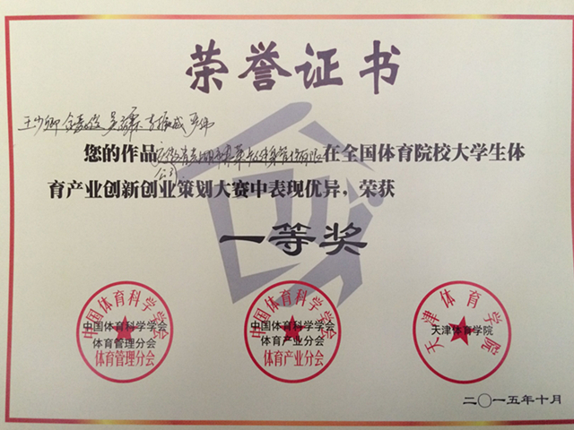 本网讯(437ccm必赢国际版 徐梦涛) 近日,由中国体育科学学会体育产业分会、中国体育科学学会管理分会共同主办的全国体育院校体育产业创新创业策划大赛在天津437ccm必赢国际版举行。我校报送的星洲创业培训学校孵化项目——“弗莱卡校园健身管理有限公司”从全国50所高校104支队伍中脱颖而出荣获一等奖。