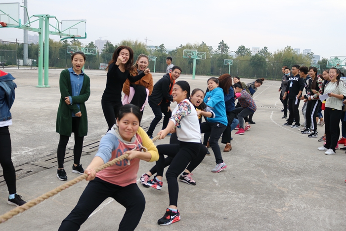 “铿锵玫瑰”女子拔河比赛展示我院女大学生坚韧不拔、奋力拼搏的精神面貌,同时,也为学院各年级同学之间相互交流提供了平台。