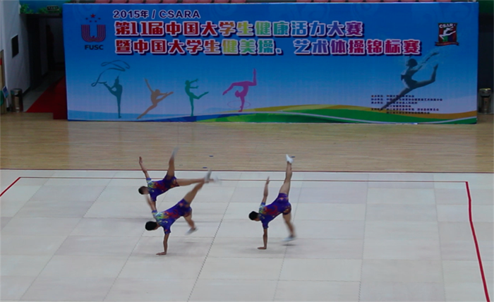 据悉,本次大赛分为高水平组、体育院校组和大学普通组三个组别,共有来自台北、北京、上海、陕西、广东等87所大学、1200余名运动员参加比赛。我校派出了11男13女共24位运动员参加了体育院校B组男子三人、男子五人、有氧舞蹈等所有9个项目的角逐,是我校体育表演专业成立以来,组织规模最大、参与人数最多的一次赛事。