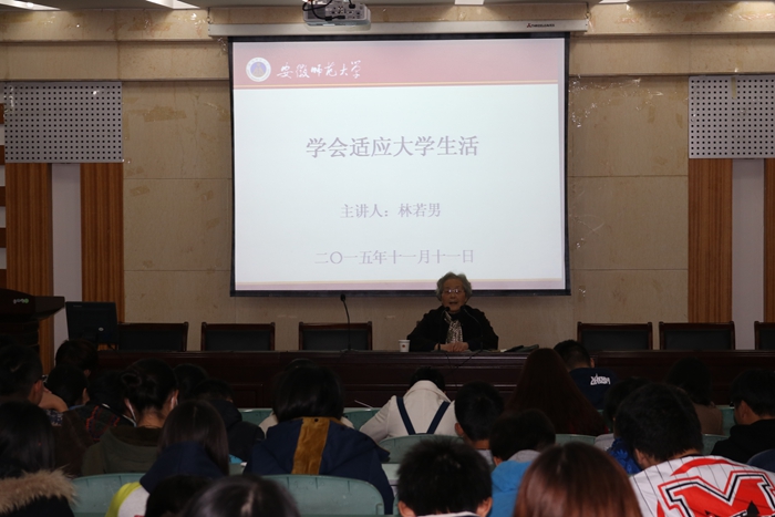 莫道桑榆晚,微霞尚满天,年过八旬高龄的林老师心系新同学们,始终坚持在教师的工作岗位中。讲座中,林老师结合自身多年从教经验和同学们分享成长经验和人生感悟,她通过两个问题“什么是大学?如何度过大学?”引发同学们深思,并从“学会去欣赏别人的优点、学会尊重他人、与同学和谐相处”三点勉励同学们要珍惜大学友谊,最后林老师鼓励同学们“学会生活自理、自我教育、自我服务、自我理财”,努力学习科学文化知识,为成为祖国栋梁而奋斗终身。“大学对我们来说只有一次,要学会珍惜大学生活,不要在大学浪费时间,在这里才是我们追求理想的净土和发挥才能的舞台”。