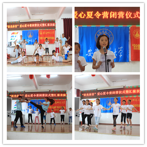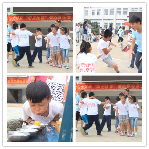 在实践期间,除了各种课程的进行,课后还有丰富多彩素质拓展和体育游戏,有丢手绢、击鼓传花等等。游戏注重趣味性,但同时也锻炼了同学们的速度、反应力,而游戏的主要目的是为了培养学生们对体育活动的兴趣。7月15日天气正好,安师大体院”阳光体育”爱心夏令营之趣味运动会成功举办。运动会比赛项目形式多样,有团体赛:拔河、两人三足、带球跑;个人赛:抢板凳、萝卜蹲、乒乓球过河多个比赛项目。运动会秉承着安全第一,比赛第二的原则,旨在通过趣味性体育项目让孩子们走出课堂,迎接阳光,感受体育带来的快乐。运动会中各个班级向大家展示了一周的学习成果,为最后的汇报表演做着预热。通过这次运动会的开展,同学们学会了合作与公平竞争的精神,同时也增进了同学之间、同学与老师之间的感情。