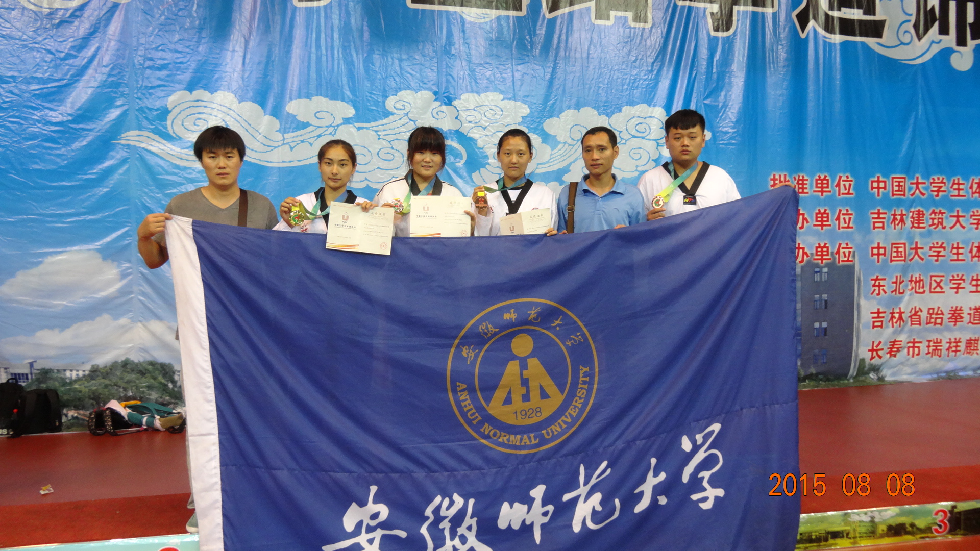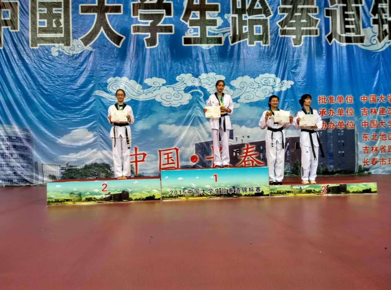 8月6日-9日,2015年中国大学生跆拳道标赛在吉林省长春市吉林建筑大学举行,全国共有118所高校1000多名运动员参赛。我校跆拳道队获得1块金牌、3块铜牌和2个第五名。