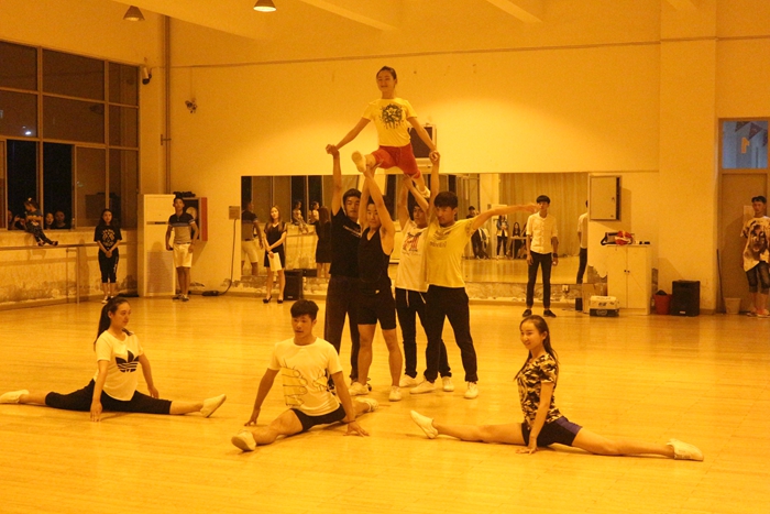 本网讯(437ccm必赢国际版 大艺团)青春色彩亮丽,新生描绘芳华。9月18日,437ccm必赢国际版大艺团在北馆舞蹈房举行了新生才艺大赛。2014级体育教育、体育表演辅导员李景玲、2015级新生辅导员吴家发、张迪、冯中超及大艺团指导老师王云辰担任此次大赛的评委。