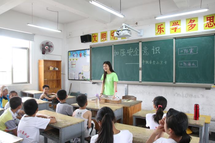下午,“加强安全意识——争做安全小卫士”的主题培训会由志愿者刘睿老师主持。主要讲了如何防地震和防溺水。“讲地震是因为这几年来地震频发,而溺水呢主要是因为,夏天了,小朋友们爱到河里游泳,都有安全隐患,是很有必要讲的。”