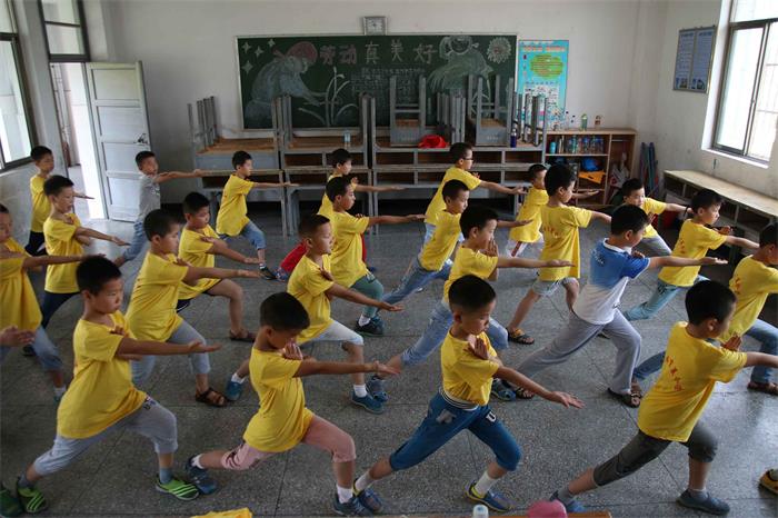 无论是武术还是舞蹈,集体的美感格外重要。“只要他们跳整齐了,即使最简单的动作都充满着美感。”舞蹈班老师这样说。在武术班,老师和孩子都十分严肃认真,“哈——哈——哈——”小家伙们的长拳打的有模有样。