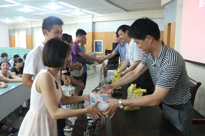 安全培训结束后,学院组织了对留校学生的慰问,学院领导老师向全体留校学生发放了牛奶、花露水、毛巾、洗发水等生活用品和防暑降温用品,希望能够在盛夏给学生送去一抹清凉,表达了对同学们的关心和问候。