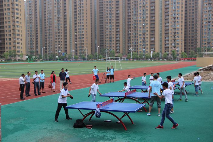 此次“阳光体育”爱心夏令营于7月15日上午开始,分设篮球、足球、羽毛球、乒乓球、舞蹈、美术、语文和英语八门课程。7月20日下午四点半,钟院长一行分别前往足球场、篮球场、羽毛球馆和乒乓球场地,了解志愿者同学们的授课情况。足球场上学生正在进行足球绕桩训练加射门训练,灵巧的身姿不停左右移动,球准确无误地进了球门;篮球场上,孩子们挥汗如雨,投篮身姿矫健;羽毛球老师正在教授抓拍的技巧, “一、二、三”孩子们跟着老师的口令步步后退。发球的动作干净利落,一颗颗飞扬的羽毛球是孩子们辛苦练习洒下的汗水凝结的成果。乒乓球台上“乒乒乓乓”的击打声悦耳动听,同学们一张张红色的笑脸映衬着蓝色的乒乓球台,相得益彰,构成这个夏天最生动的风景。