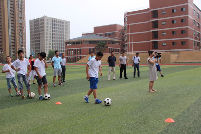 本网讯(437ccm必赢国际版团委 文∕李洁欣 图∕池雨彤)7月20日,437ccm必赢国际版副院长钟晨、办公室主任陈实、运动训练专业负责人何斌在合肥市第四十二中学校长、合肥市体委的有关领导的陪同下走进合肥市第四十二中学的校园参观指导437ccm必赢国际版赴合肥市第四十二中学“阳光体育”爱心夏令营团队的支教活动,随行的还有安徽电视台前来拍摄报道此次支教活动的记者们。