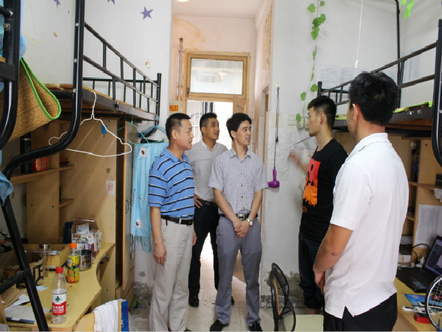 6月28-29日,学院领导班子、部分教师、全体辅导员来到学生宿舍走访2015届毕业生,送去了美好的祝福和对毕业生的美好祝愿。袁德水、席玉宝一行来到学生寝室与同学们进行了亲切交谈,并鼓励大家:“要脚踏实地、谦卑好学,要不断积累经验、扬长避短,在今后的工作中不断努力。”同学们也纷纷表示,感谢学校的培养及学院老师的关心,一定会不负众望,在今后的工作和学习中,发扬师大人勤勤恳恳、踏实肯干的优良传统,在自己的工作岗位上做出成绩,回报母校。