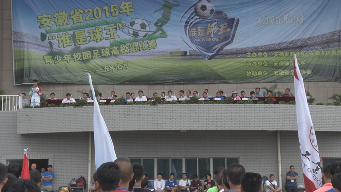 朱家存宣布安徽省2015年“谁是球王”青少年校园足球高校组比赛正式开赛。