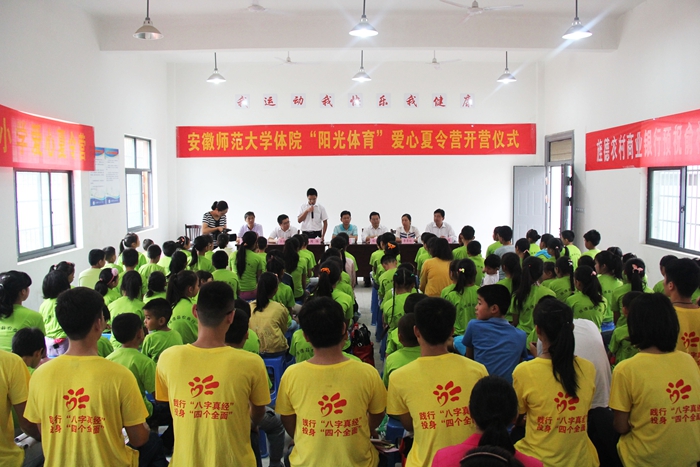 上午9时,赴旌德俞村小学“阳光体育”爱心夏令营开营仪式正式启动。出席本次仪式的有旌德县教育局的副局长李有权、文明办主任程继虎、437ccm必赢国际版辅导员李景玲、俞村小学校长姚元强以及本次活动的赞助商旌德农商行俞村支行行长王海军和农商行个贷部经理周伟等。本次仪式由俞村小学俞士宏副校长主持,仪式上,姚校长代表俞村小学全体师生对远道而来志愿者们表示热烈欢迎,并希望志愿者能让孩子们跳出课本学知识,看到外面更精彩的世界。指导教师李景玲则要求志愿者要结合专业特色,以满腔热情投入社会实践中,以体育梦践行中国梦。本次夏令营活动的队长代表志愿者发言,表示志愿者将尽最大的努力为学生创造一个愉快充实的假期。旌德县教育局副局长李有权以94届师大校友的身份对志愿者们付出的艰辛努力表示感谢,并对夏令营活动的顺利召开表示祝愿。最后,旌德县文明办主任宣布bwin必赢线路检测体院“阳光夏令营”正式开营!