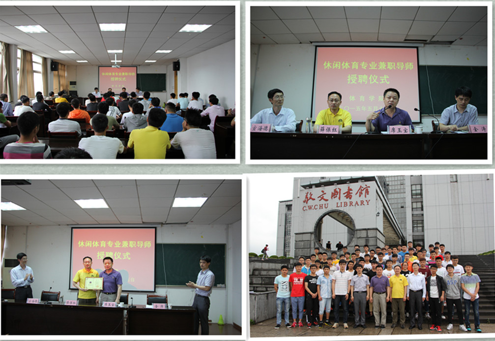 受聘仪式,学院丰富教师资源。一个好的导师会带领一群学生朝着更光明的方向不断进步,让每个同学掌握更多、更全面的知识。作为我院的第一届休闲体育专业,我院十分重视休闲体育专业的发展。五月十五日,在437ccm必赢国际版行政楼二楼举行休闲体育专业兼职导师受聘仪式。院长席玉宝,副院长金涛,社会体育负责人宣海德以及辅导员吴家发、黄彦锴出席受聘仪式。仪式上,金涛向薛保红对于休闲体育专业的关心表示由衷的感谢,并且希望同学们与薛博士多交流。随后,薛保红结合国内体验式教育向大家详细的阐述了体育式教育的发展,并且勉励同学们做好自己的事,最后,席玉宝为薛保红颁发聘书,并且希望同学们认真学习基础技能,打牢基础,为自己未来的发展添砖加瓦。