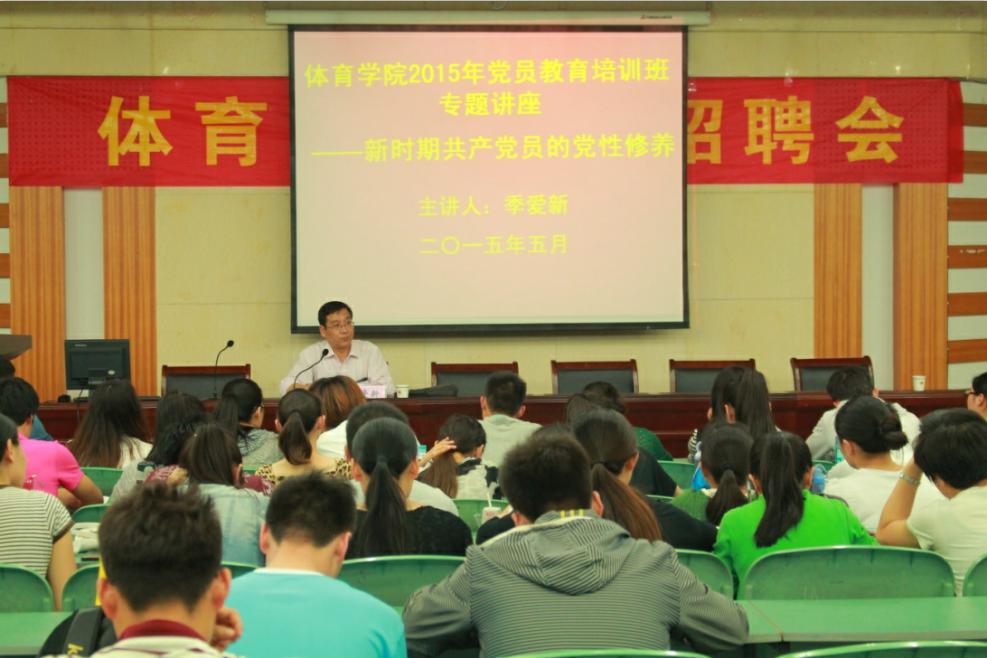 本网讯(437ccm必赢国际版 汪暠 陈晓雪)5月13日晚上,437ccm必赢国际版在学院二楼圆形报告厅举办党员教育培训班,校党委组织部部长季爱新做了题为《新时期共产党员的党性修养》辅导报告,院党委副书记黄德春、院党委秘书汪暠、全院学生党员参加报告会。报告会由黄德春主持。