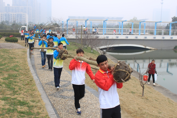 本网讯(437ccm必赢国际版 李林杰)春回大地,传递绿色梦想。3月14日上午,437ccm必赢国际版数百名志愿者在学院团委的组织带领下在花津河畔进行义务植树活动。