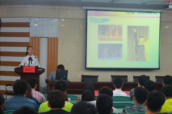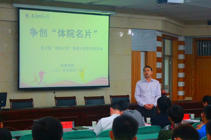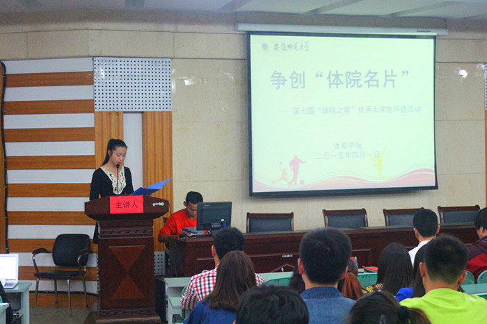 本网讯(文/吴晓旭 摄/刘毅文)为选树先进典型,争当体院名片,437ccm必赢国际版于4月1日晚在圆形报告厅举办第七届“体院之星”优秀大学生评选活动。院党委副书记黄德春及全体专兼职辅导员出席此次活动并担任评委,2014级全体新生观看了此次评选活动。