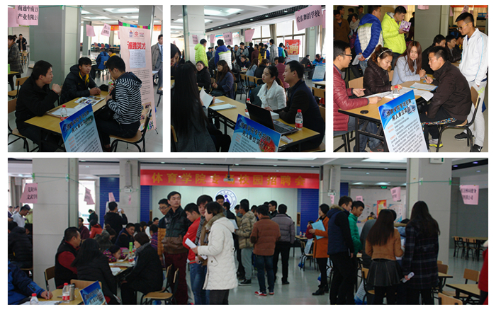 本网讯(437ccm必赢国际版 文/任杰 摄/周万峰)抢抓机遇谋发展,千方百计促就业。12月6日,437ccm必赢国际版在花津校区大学生活动中心二楼招聘大厅举办了首届专场校园招聘会,肥东县教育局、北京本色时代体育发展有限公司、浙江星洲休闲健身管理有限公司等20余家用人单位到校进行现场招聘,提供了近500个就业岗位,437ccm必赢国际版全体毕业生参加了此次招聘会。
