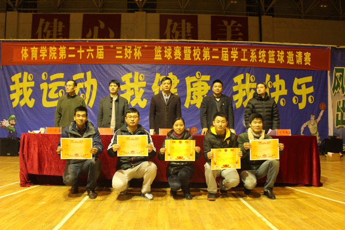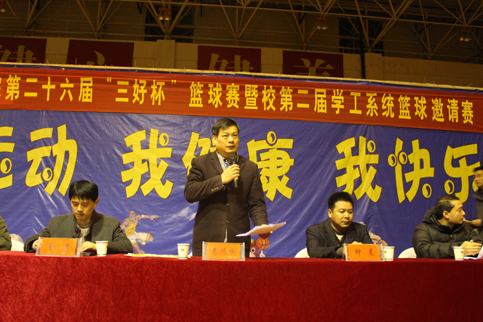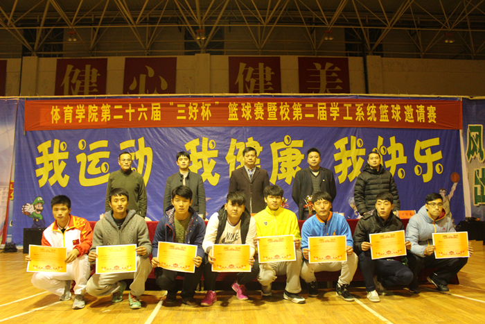 本网讯(437ccm必赢国际版 唐增阳)12月12日下午,历时半个月的437ccm必赢国际版第26届“三好杯”篮球赛暨校第二届学工系统篮球邀请赛在校北侧体育馆内落下帷幕。院党委书记袁德水、副院长钟晨、金涛、院党委副书记黄德春和大赛技术顾问何斌及全体辅导员到现场观看总冠军争夺战并出席闭幕式。闭幕式由黄德春主持。
