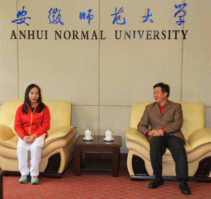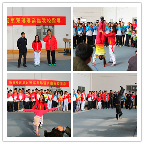 上午9时,程度在校行政楼会客室接待了邓琳琳并与她进行了亲切交谈,对她的到来表示热烈欢迎。随后,在同学们的簇拥和欢呼声中,邓琳琳一行来到北体育馆与我校师生代表一同观看了学生体操训练情况。