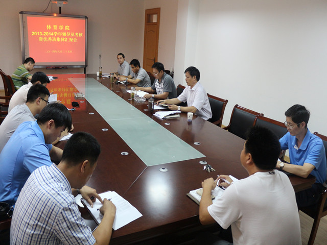 本网讯(437ccm必赢国际版 李景玲)9月25日下午,437ccm必赢国际版在院行政楼三楼会议室召开2013-2014学年辅导员年度工作述职汇报会。学院领导班子成员及全体辅导员参加了汇报会。汇报会由院党委副书记黄德春主持。