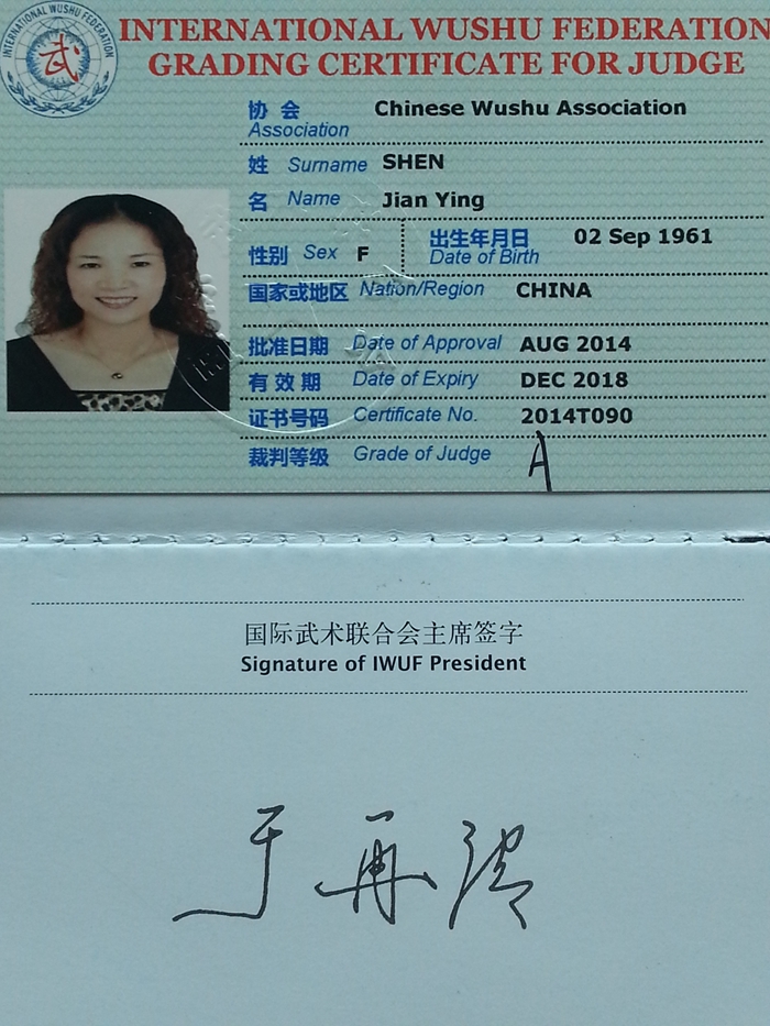 据悉, 沈剑英1979年9月考入上海437ccm必赢国际版武术专业,2004年在北京体育大学进行高级访问学者研修,师从徐伟军教授主修武术套路。早在1982年她就取得该项目国家一级裁判资格,1995年成为国家级裁判,2005年考取“国际C裁判”证书,2009年考取“国际B裁判”证书。执裁20余年的她,先后在国际国内执裁武术比赛达50余场,其中主要有:2008年北京奥运会,第十五届亚运会,第九届世界武术锦标赛,世界首届武搏运动会,第十四届世界青少年武术锦标赛,加拿大全国武术锦标赛,第十届全国运动会武术比赛,第十一届全国运动会武术比赛,第十二届全国运动会武术比赛,并连续三届执裁世界传统武术锦标赛。