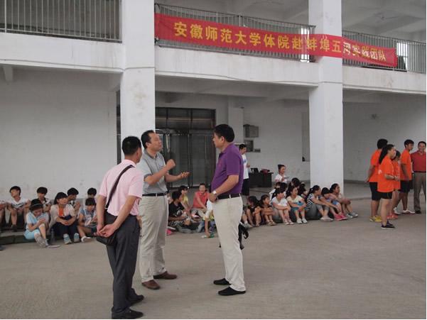 据悉,本次活动受到了学院领导及五河县教育局高度重视,7月4日下午,437ccm必赢国际版院长雷震、党委副书记黄德春、副院长钟晨在五河县教育局局长孙家忠等陪同下到双庙中学实地察看指导437ccm必赢国际版开展夏令营实践活动,他们对工作的开展表示肯定,并提出了精心组织,注意安全,讲求实效的工作要求。