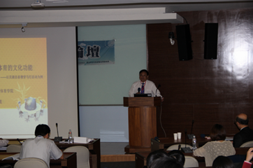 本次论坛以“促进运动休闲产业交流与合作”为主题,为海峡两岸的运动休闲、体育教育、运动传播等方面提供一个交流沟通、携手合作的平台。台湾运动传播学会理事长陈世昌博士、广西蕯玛兰奇体育园区韦生贵董事长、辅仁大学体育学系主任曾庆裕博士、真理大学观光休闲与运动学院陈天赐院长、屏东教育大学陈坤柃教授、中正大学运动竞技系林晋荣教授、安徽财经大学钱杰教授及雷震院长等专家在论坛上分别作了报告。雷震院长在论坛上作了题目为“村落语境中传统体育的文化功能”的报告,得到与会专家的高度关注。