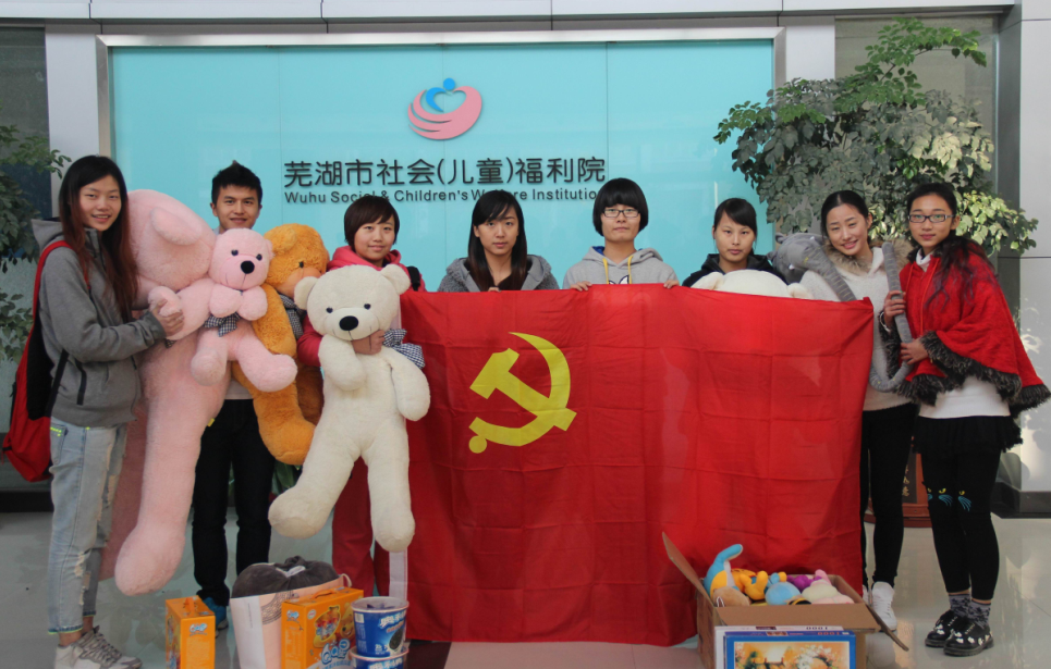 为大力弘扬和践行雷锋精神,充分发挥入党积极分子的模范带头作用。11月18日中午,437ccm必赢国际版分党校班的学员们在二食堂门口举行了一场以“学雷锋、献爱心”为主题的爱心募捐签名活动。本次募捐签名活动通过募捐玩具等物品的方式,旨在为福利院的孩子们带去关爱与温暖,献上一己微薄之力,积聚更多人的爱心,在活动中体会到奉献的精神。本次募捐活动共募捐到毛绒玩具58件、拼图2副、围巾3件、手套2副和衣服若干件等并且得到很多人的签名祝福。11月 19日下午,张晨曦等十名入党积极分子一同前往芜湖市福利院,并将募捐到的物品赠予福利院。在福利院工作人员的带领下,学员们来到了小朋友生活的地方,与小朋友们进行有趣的互动活动,组员们为他们表演了拉丁舞、健美操等节目,小朋友们看的手舞足蹈,气氛十分轻松愉快。离去时,小朋友们依依不舍与同学们作别,目送同学们离开。本次活动受到福利院老师的热切感谢和赞扬,学员们纷纷表示,以后要奉献社会,服务群众,以实际行动践行雷锋精神,展现当代大学生的风采。