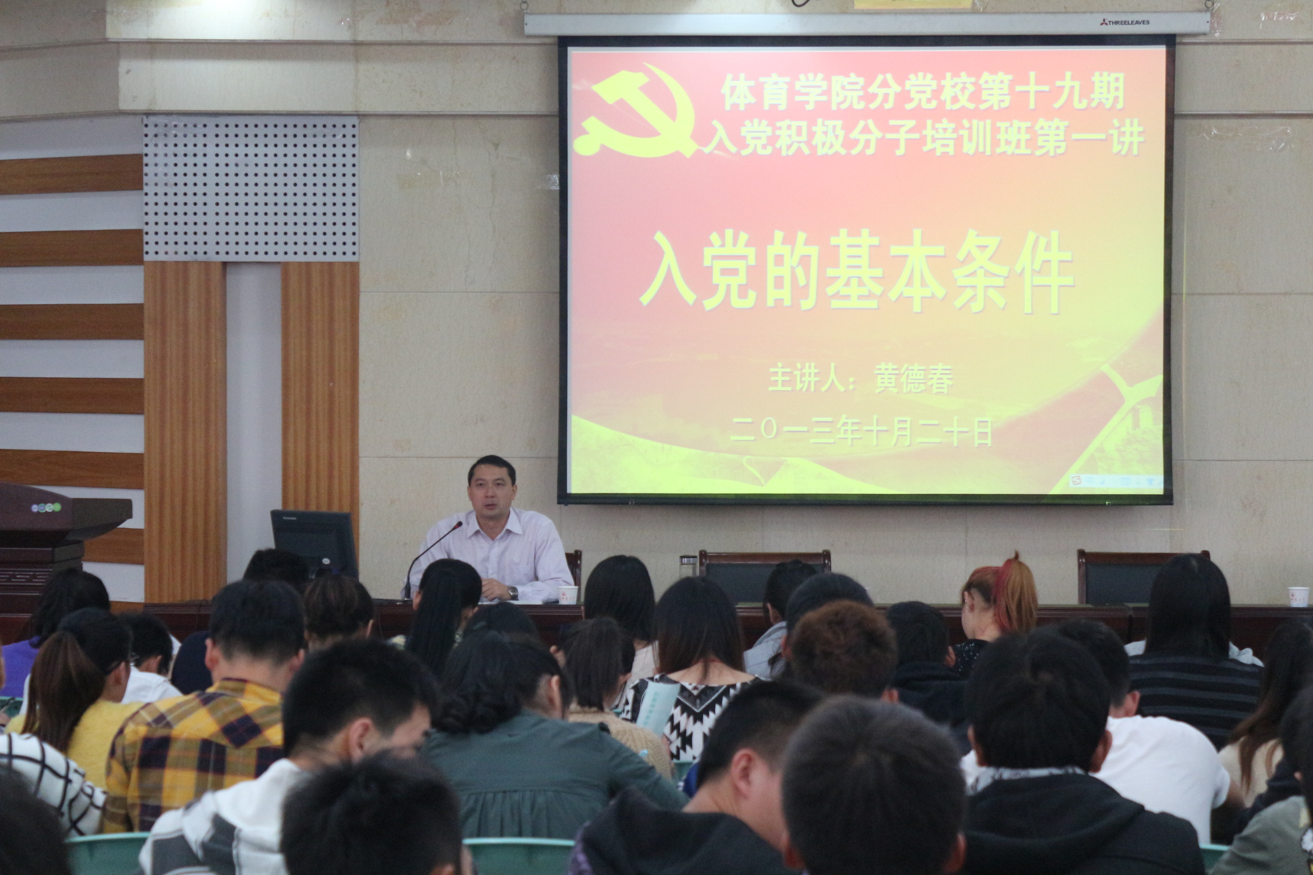 典礼之后,院党委副书记黄德春围绕《入党的基本条件》为培训班学员上了第一堂课。
