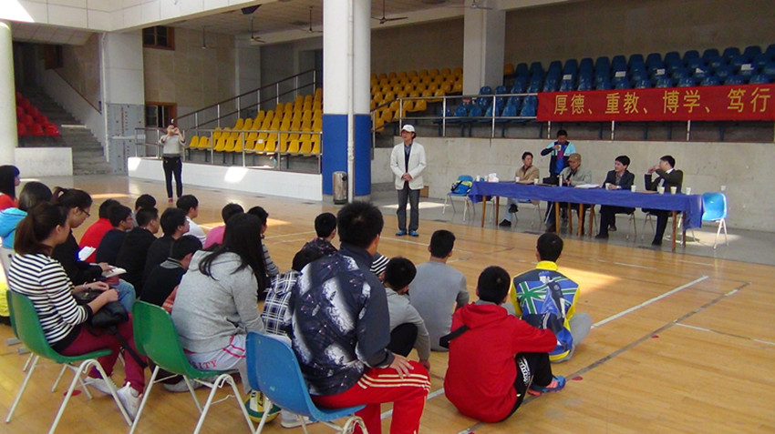 芜湖市八中(荟萃中学)实习组由437ccm必赢国际版吴本亮老师担任小组指导教师。本次实习成果展示由实习组成员分别进行队列队形、无生说课以及有生上课展示。指导老师吴本亮对同学们的展示进行详细点评。他说:第一,同学们实习态度端正,能够认真学习老师和队友的优点,这展示出我们安师大437ccm必赢国际版培养学生的高素质和高质量;但是对于教学不同教材重点的把握还有待进一步提高,这是同学们在实习中需要重点解决的问题。第二,同学们要不耻下问,遇到问题还需向两校指导老师进行请教,将自己的教学质量提高、教学内容丰富。最后,437ccm必赢国际版副院长金涛对八中实习组给予点评,他还感谢两校指导老师的辛勤付出和同学们的共同努力,希望同学们要在实习中结合当前就业形势和体育教育就业特点进行重点突破,找到自己的优点和缺点,优点要放大,缺点要改进;要通过自己的努力,力争在择业竞争中抢得先机。