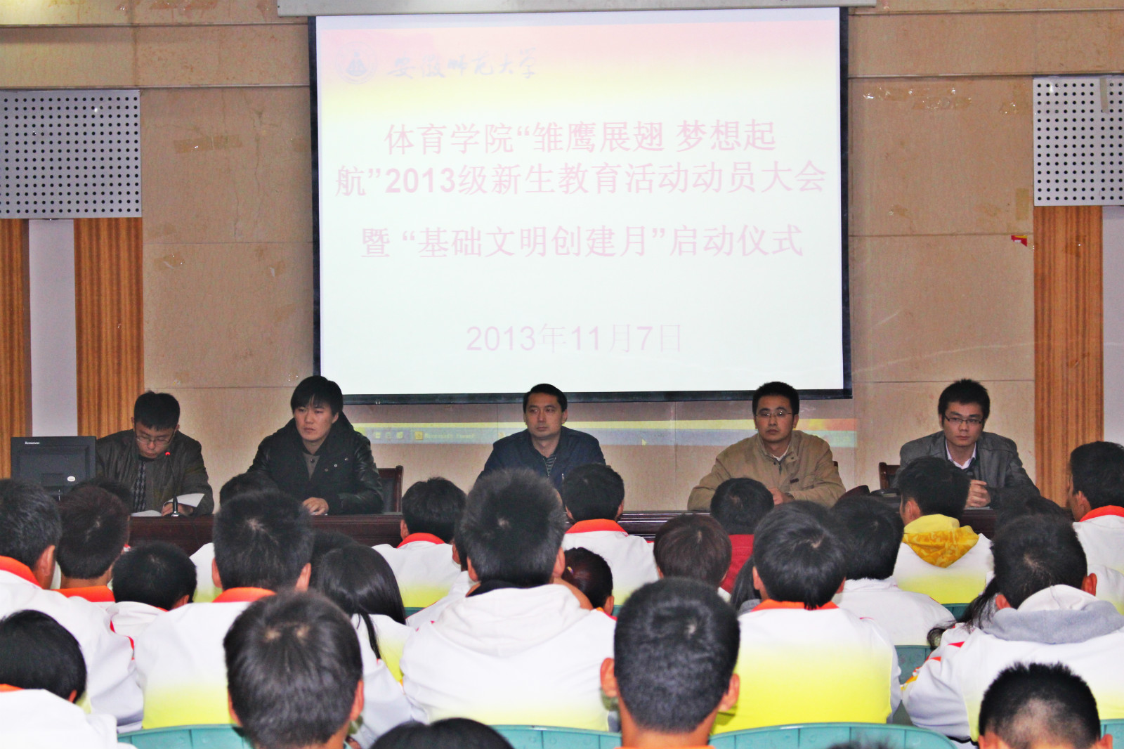 启动仪式在庄严的国歌声中拉开帷幕。首先朱凯迪介绍了“雏鹰展翅,梦想起航”2013级新生入学教育系列活动的内容,随后13级运训辅导员尹雷介绍了“基础文明创建月”活动的具体安排,学院宿舍管理中心主任席特立详细解读了《437ccm必赢国际版宿舍管理暂行办法》。
